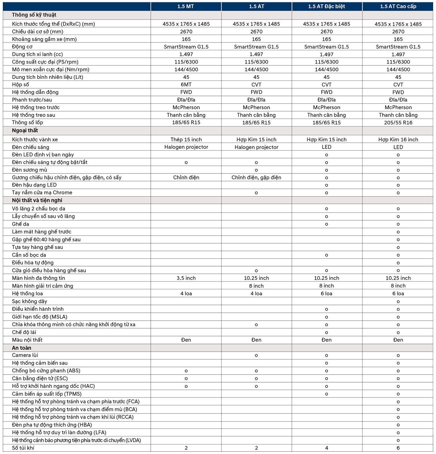Xe ô tô Hyundai Accent hoàn toàn mới với thiết kế thể thao, mạnh mẽ cùng nhiều trang bị hiện đại. Hyundai Accent được trang bị động cơ Smartstream 1.5L cung cấp công suất cực đại lên tới 115/6,300 (PS/rpm) và mô-men xoắn cực đại 144/4,500 (Nm/rpm).