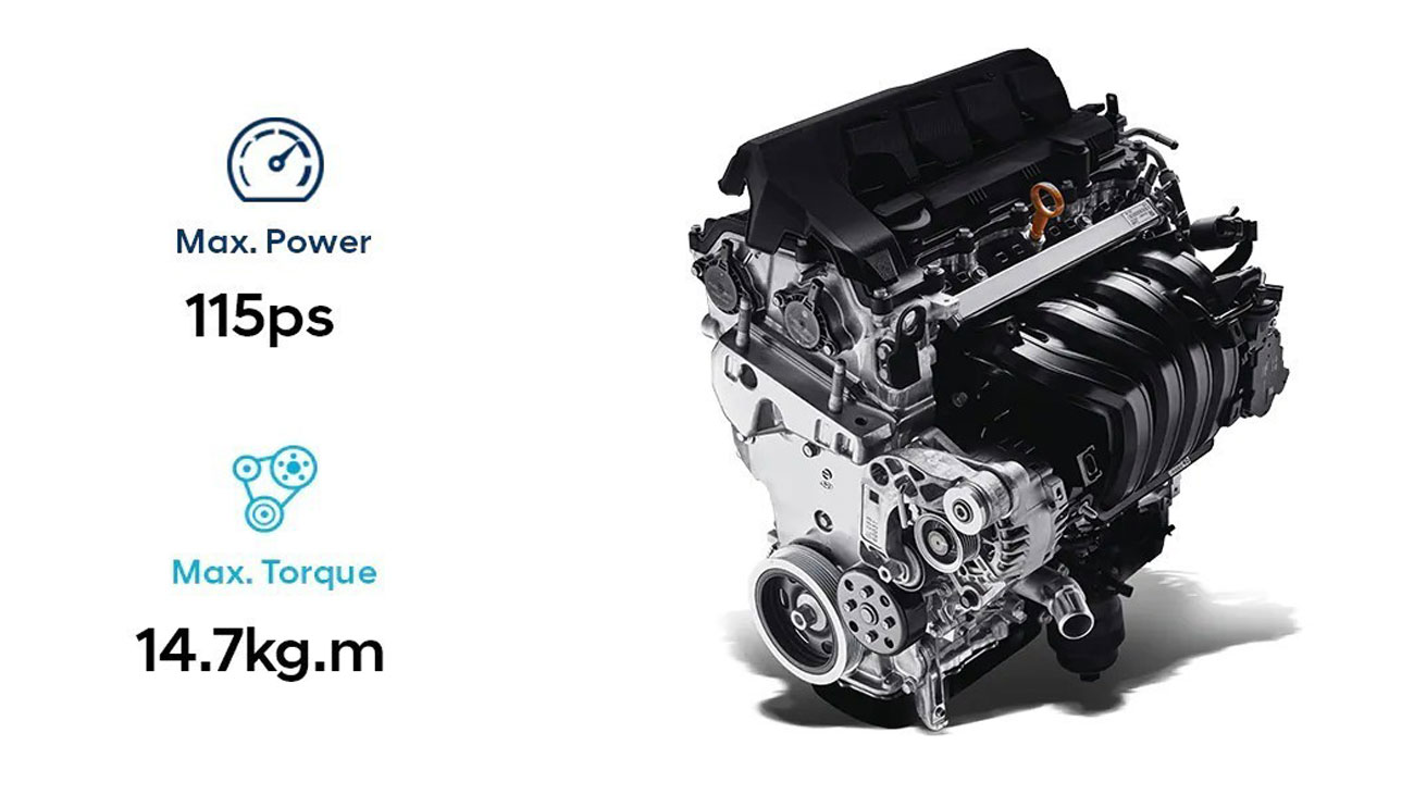 Công suất cực đại đạt 115ps tại 6,300 vòng/phút Momen xoắn cực đại đat 144Nm tại 4,500 vòng/phút.