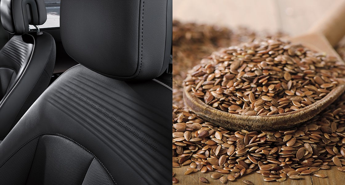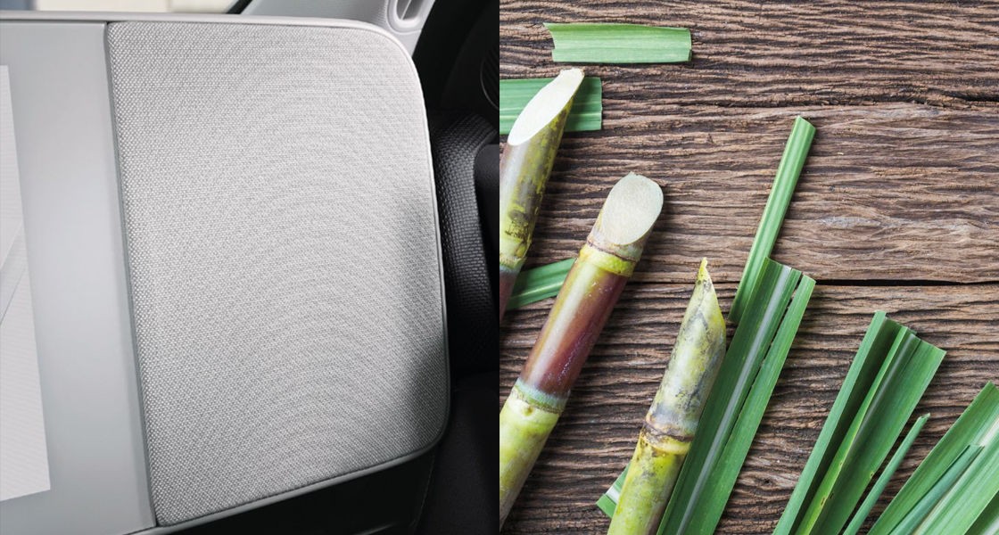 Các vật liệu từ lớp lót và vải thảm được tạo nên từ các thành phần sinh học chiết xuất từ mía và ngô. Ghế ngồi và tay vịn cửa cũng sử dụng vải làm từ chai PET tái chế.