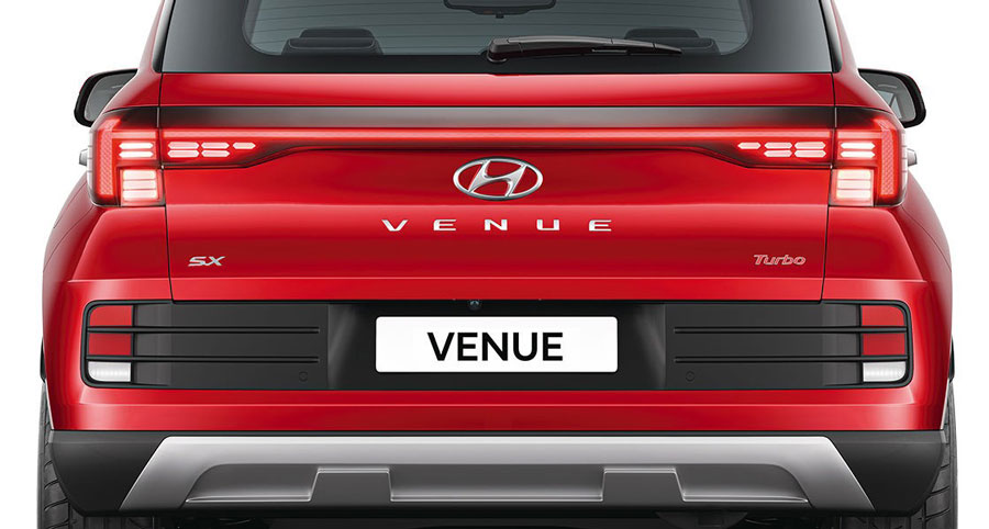 Hyundai Venue sở hữu thiết kế ấn tượng với điểm nhấn phía trước là lưới tản nhiệt kích thước lớn tạo hình thác nước Cascading Grill theo phong cách Parametric Dynamic mang dấu ấn của mẫu xe đàn anh Palisade. Cụm đèn chiếu sáng dạng Projector LED được thiết kế tách cụm mới, đặc trưng bởi đường nét sắc sảo và tinh tế. Đèn định vị ban ngày DRL (Daytime Running Light) của xe được thiết kế bao quanh cụm đèn pha tạo nên nét độc đáo cho xe. Cản trước được sơn màu bạc, tạo nên vẻ hiện đại năng động.