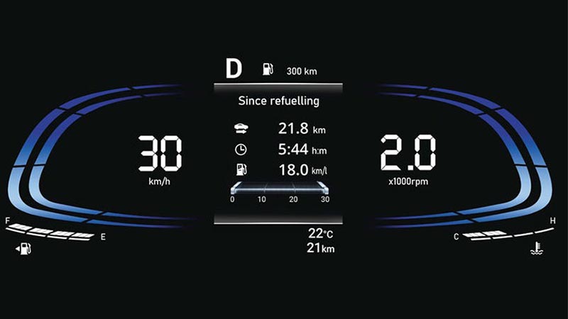 Đồng hồ thông tin của Venue được thiết kế dạng LED Digital giúp hiển thị các thông số một cách trực quan, đồng thời có thể thay đổi giao diện theo chế độ lái. Xe được trang bị điều khiển hành trình, giới hạn tốc độ MSLA, cảm biến áp suất lốp TPMS, đèn chiếu sáng tự động… đem đến một không gian tiện nghi bậc nhất trong phân khúc.