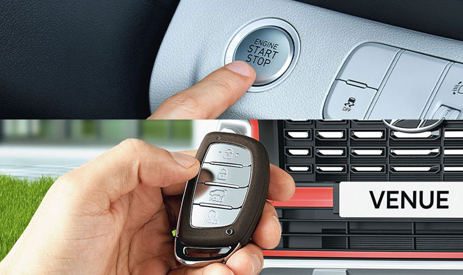 Hyundai Venue đươc trang bị nút bấm khởi động Start/Stop Engine cùng chìa khóa thông minh tích hợp khởi động từ xa. Hệ thống điều hòa tự động với khả năng làm mát nhanh và sâu, kết hợp cùng cửa gió cho hàng ghế sau đem đến không gian dễ chịu cho cả người lái và hành khách. Hệ thống nhiệt độ được hiển thị đẹp mắt trên Vô lăng xe tích hợp các nút điều khiển thông số cài đặt, chuyển nhạc, nhận cuộc gọi đảm bảo tính tiện lợi và an toàn khi vận hành.