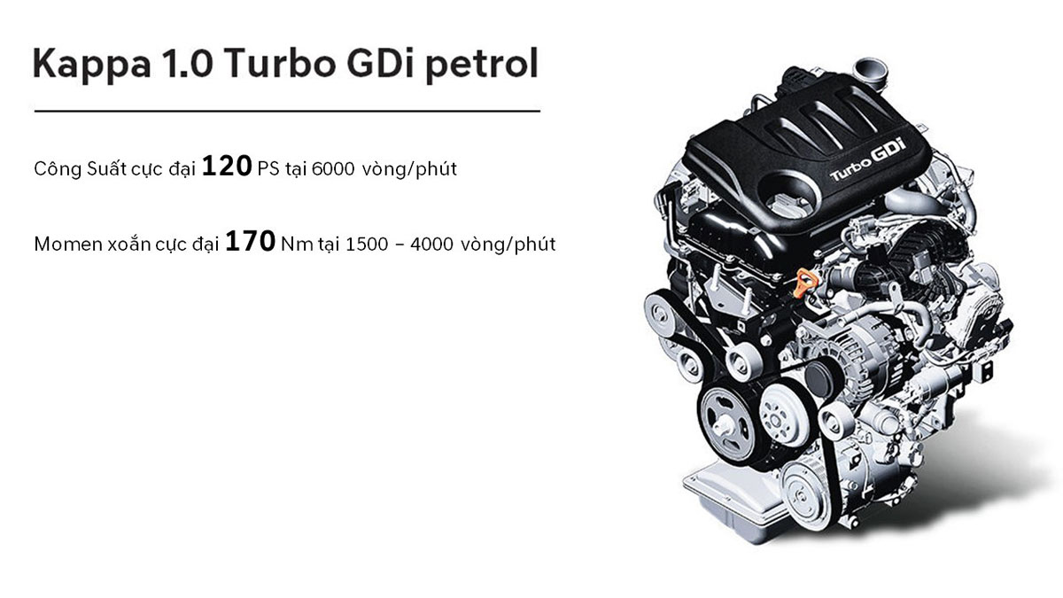 Hyundai Venue được trang bị động cơ I3 Kappa 1.0 Turbo GDI cho công suất tối đa 120 mã lực tại 6.000 vòng/phút, momen xoắn cực đại 172Nm tại 1.500 ~ 4.000 vòng/phút. Động cơ được phát triển ở Trung Tâm Kỹ Thuật của Hyundai tại châu Âu sử dụng van cửa xả (waste-gate) điều khiển điện để tối ưu hoá dòng chảy, đồng thời cải thiện mô-men xoắn ở vòng tua thấp và độ nhạy của bướm ga; cùng với bộ phun xăng áp suất lên tới 200 bar, nhằm tăng hiệu quả sử dụng nhiên liệu và giảm lượng khí thải.